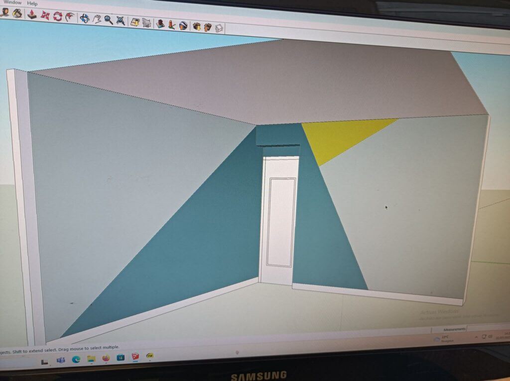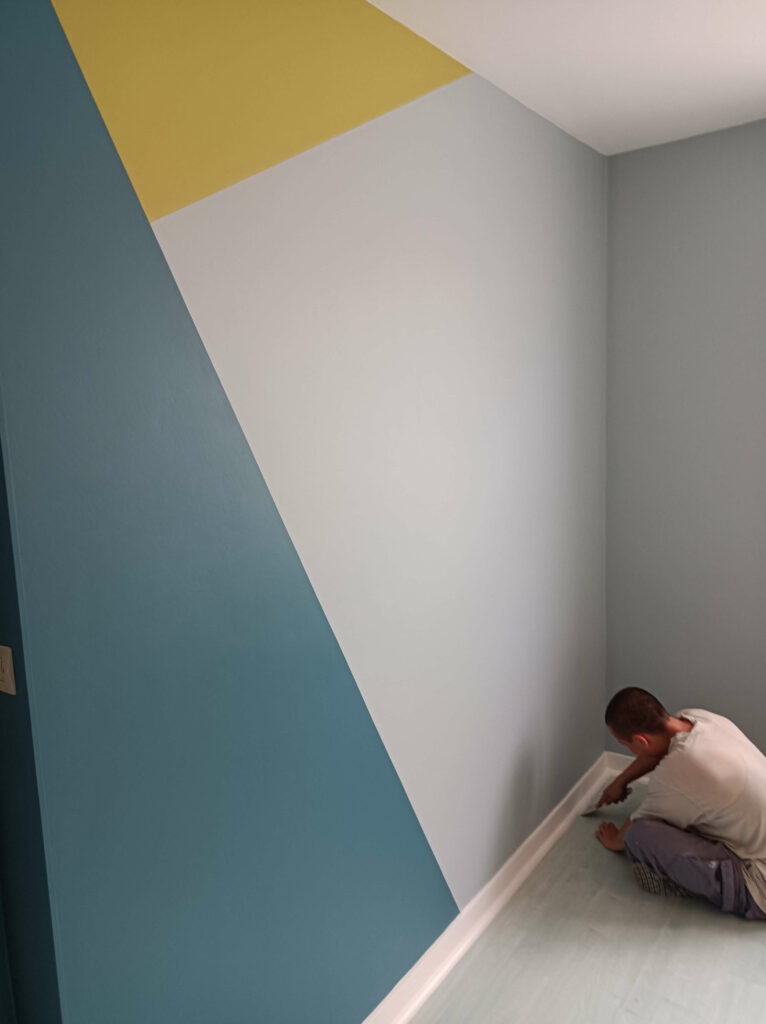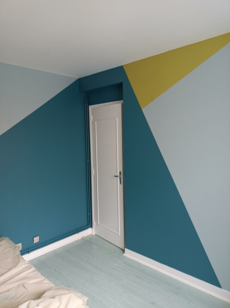 Comme l’illustre les photos ci-dessous, nous avons effectué des chantiers de peinture, avec des motifs géométriques qui ont ajoutés un peu de complexité au projet.