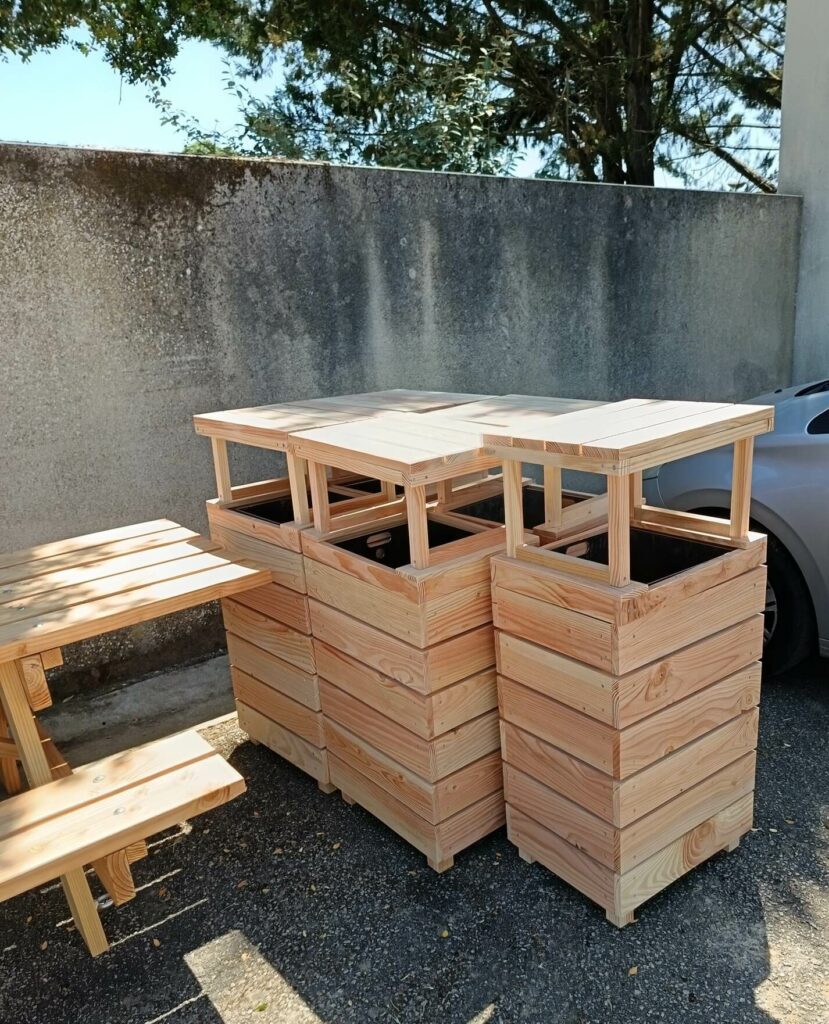 De plus, pour la commune de Saint Georges les Baillargeaux, nous avons fabriqué tables de pique-nique et poubelles.